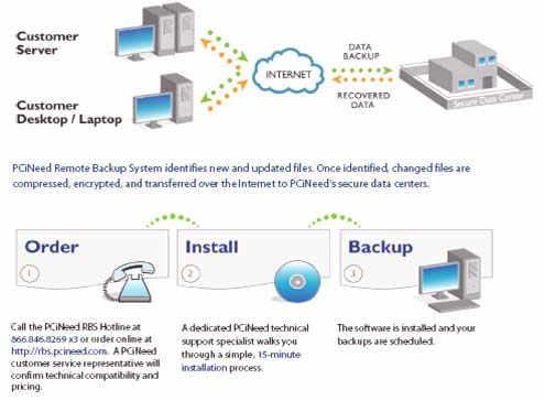 Data remains encrypted while transferred over the Internet and during storage at PCiNeed's secure date centers. Up to 448-bit encryption. |
